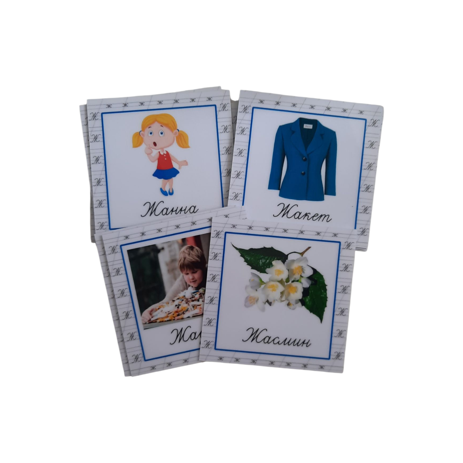 В наборе 12 двухсторонних карточек на звук Ж. Размер карточек 9/9см.