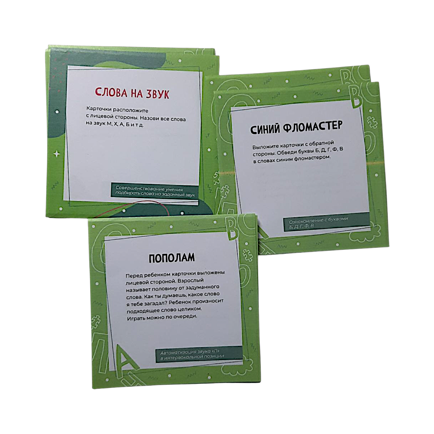 В наборе 29 двухсторонних карточек на звук Л.  Размер карточек 9/9см.