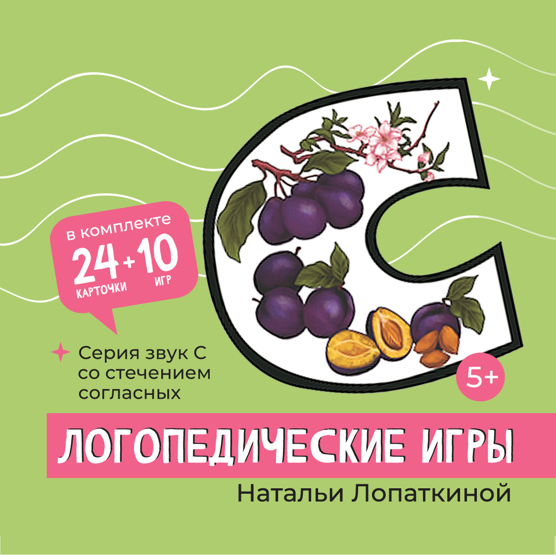 В наборе 24 двухсторонних карточек на звук С. Размер карточек 9/9см.