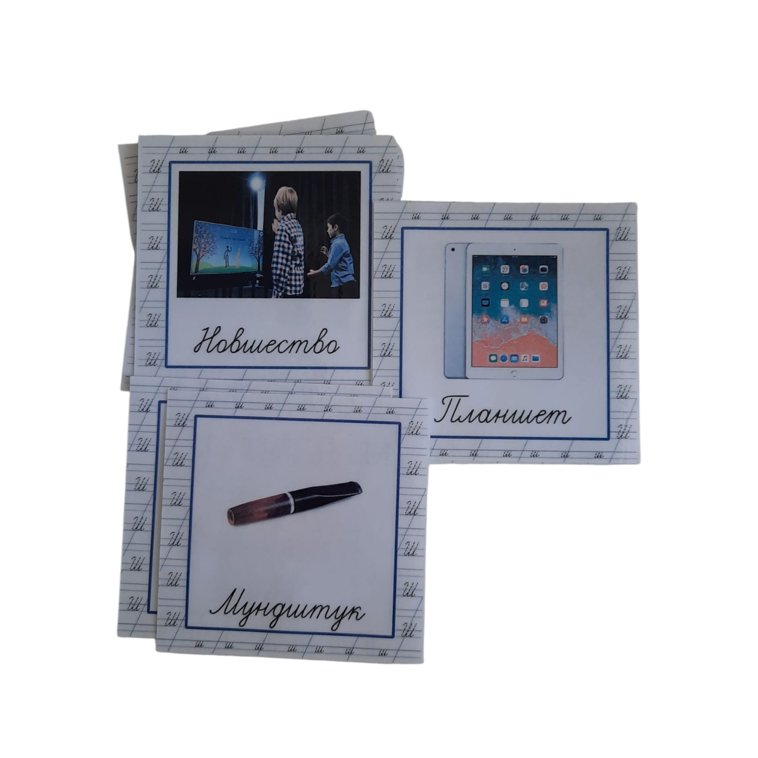 В наборе 21 двухсторонних карточек на звук Ш. Размер карточек 9/9см.