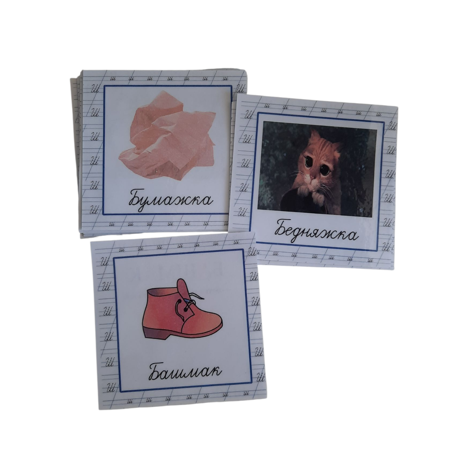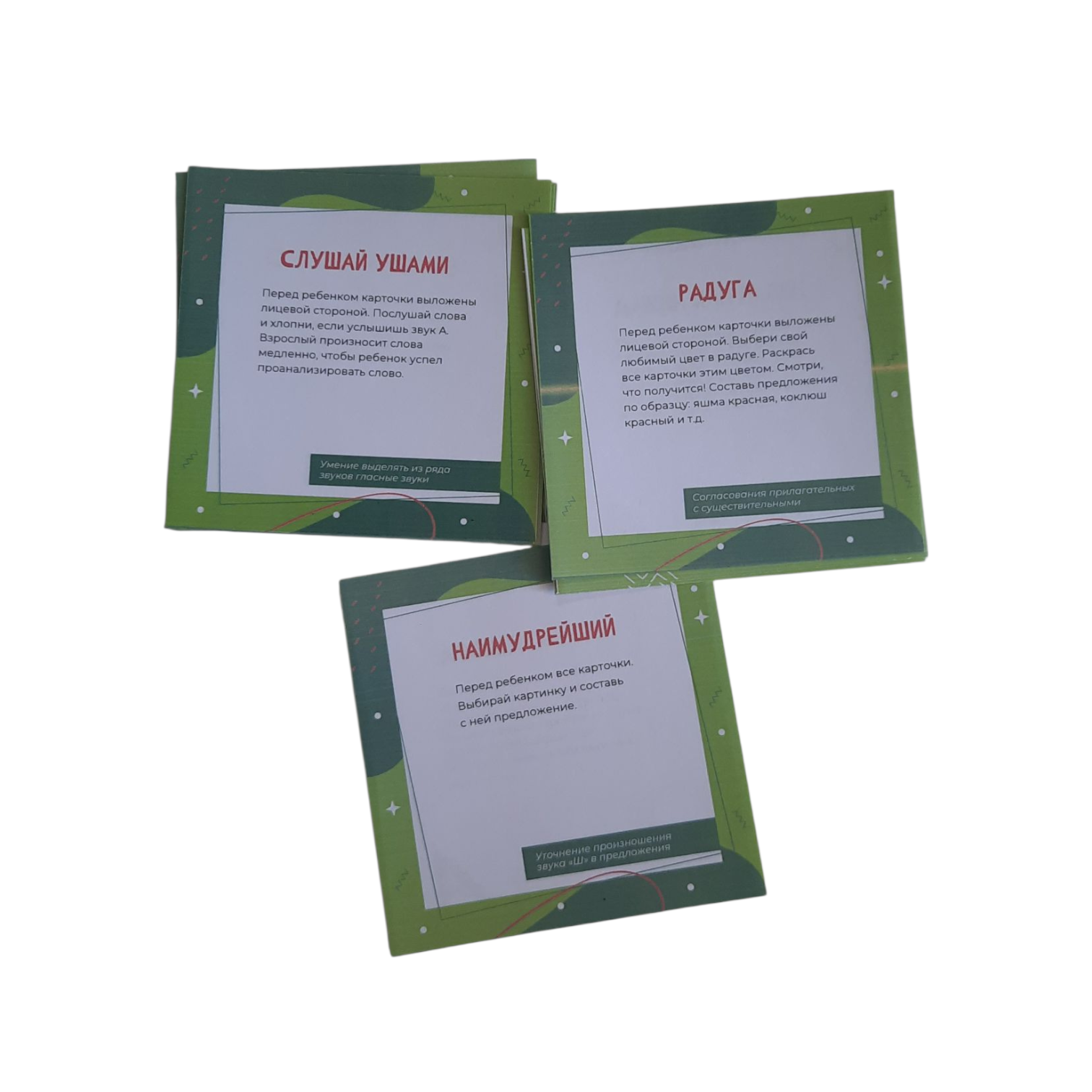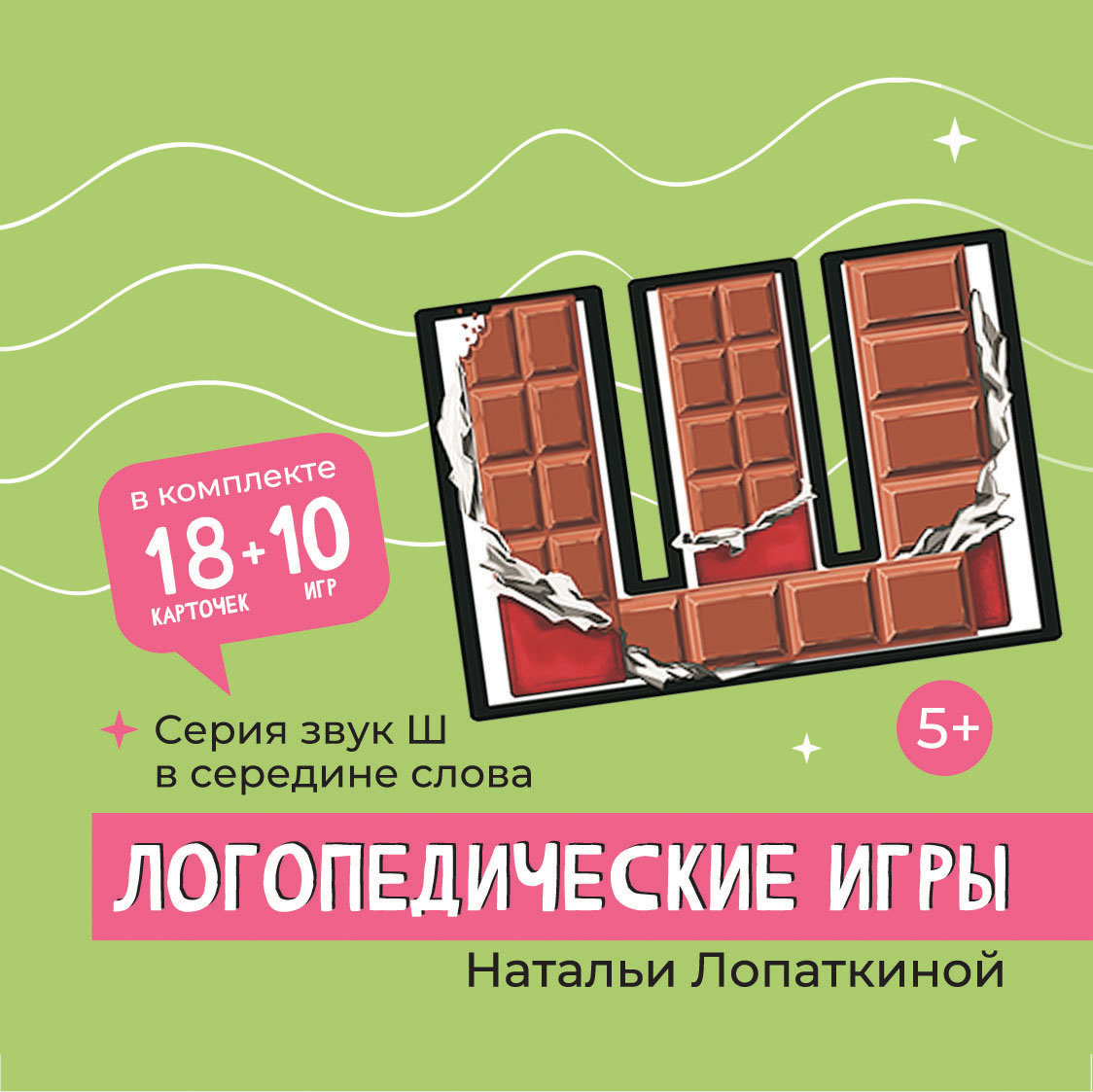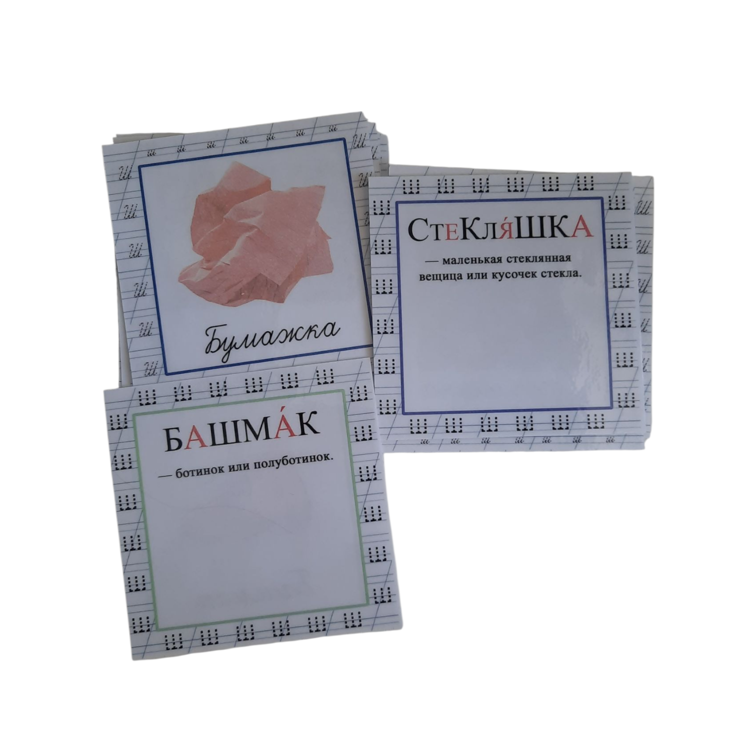 В наборе 18 двухсторонних карточек на звук Ш. Размер карточек 9/9см.