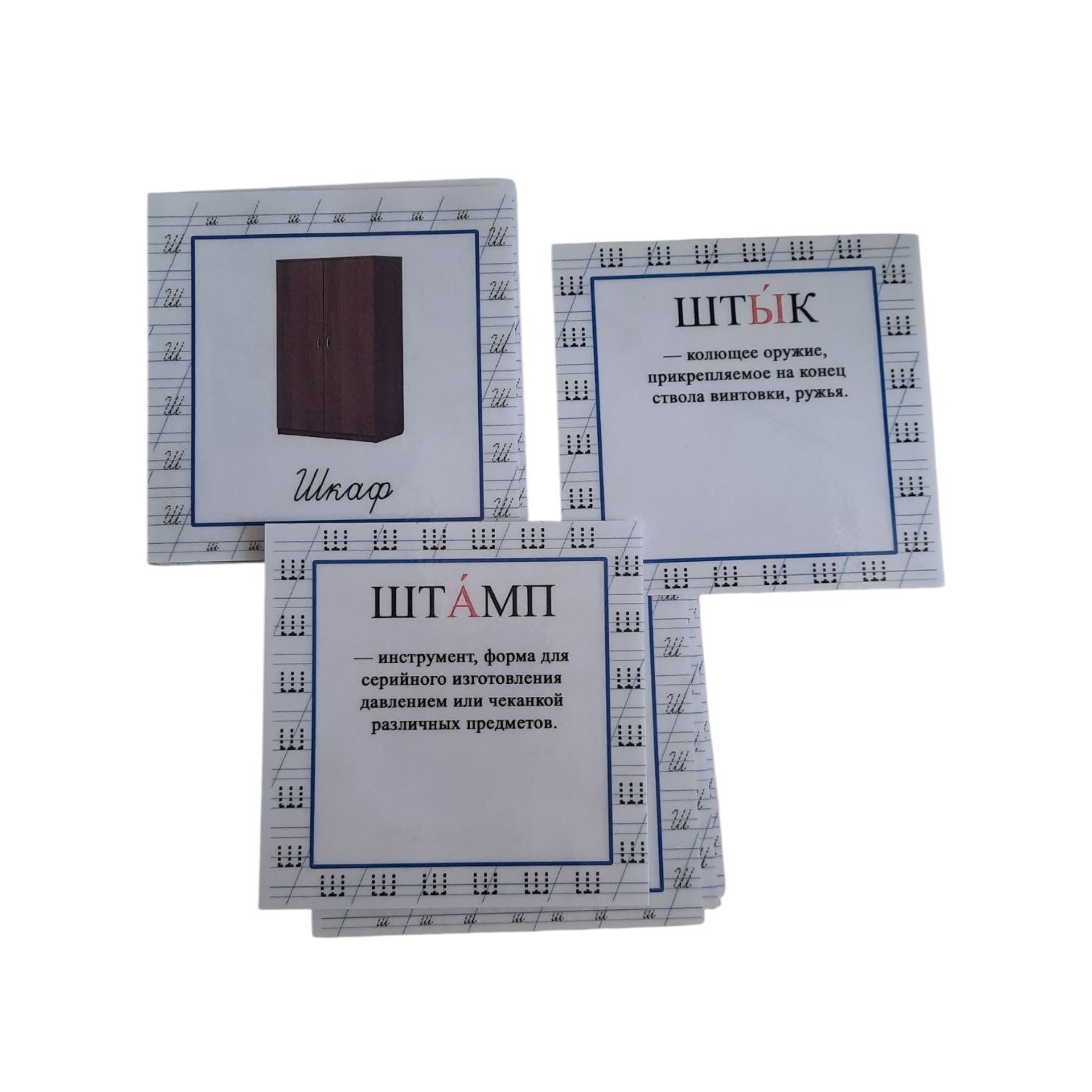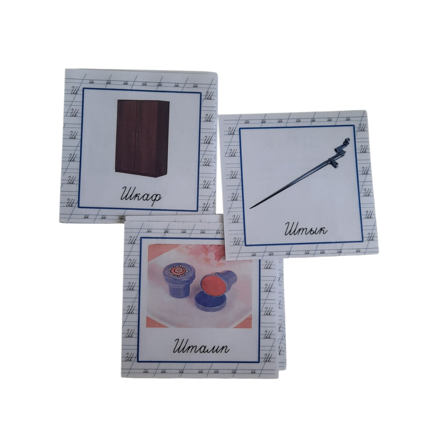 В наборе 18 двухсторонних карточек на звук Ш. Размер карточек 9/9см.