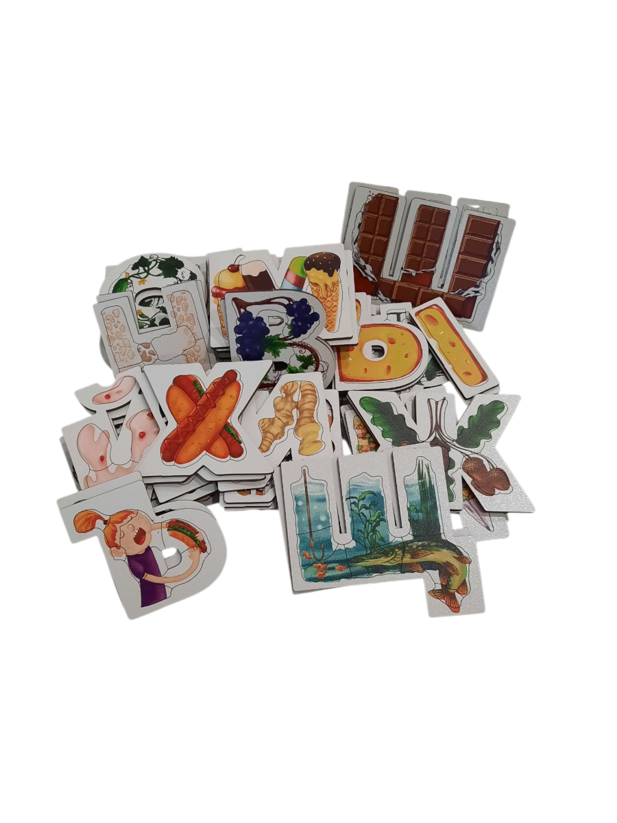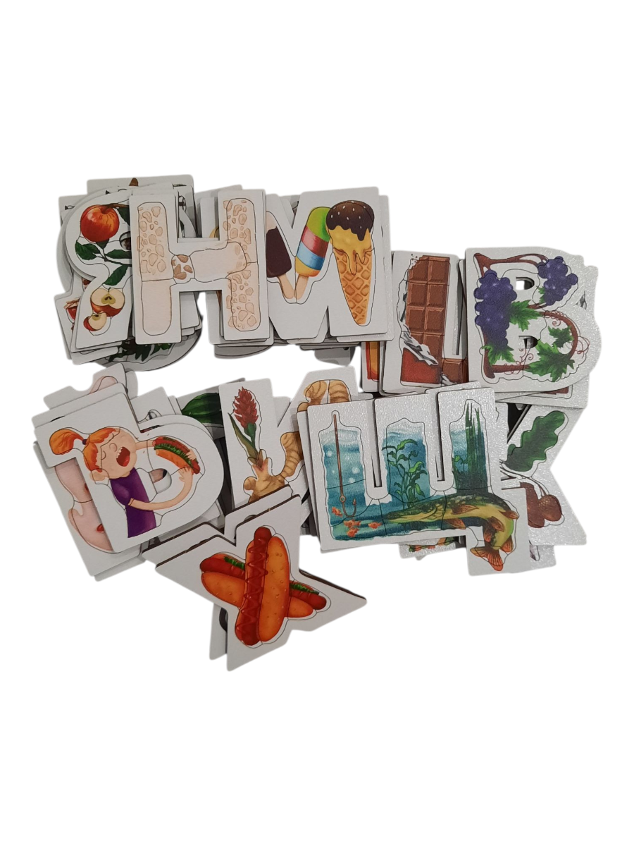 Алфавит для детей. Деревянный в виде пазл. В комплекте 33 пазла. Тематика алфавита «Продукты» . У букв разный уровень сложности. Начиная от 3 до 13 частей. Высота 1 пазла-буквы 7 см. Пазл – это образовательная игра, которая развивает усидчивость, аккуратность, терпение и внимательность, моторику. Когда малыш собирает картинку, он узнаёт, как устанавливаются связи между частицей и целым. Ребёнок развивает логику, мышление, мелкую моторику рук.