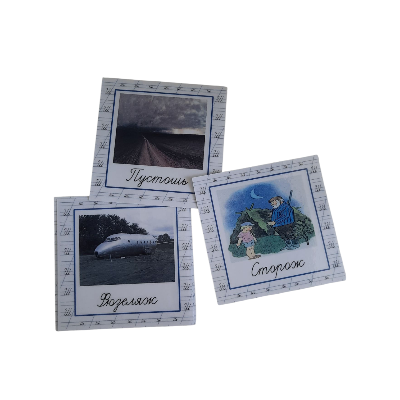 В наборе 12 двухсторонних карточек на звук Ш. Размер карточек 9/9см.