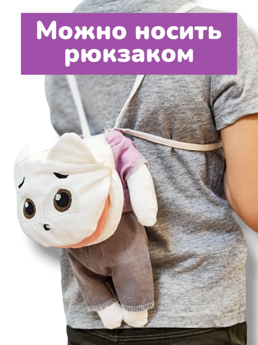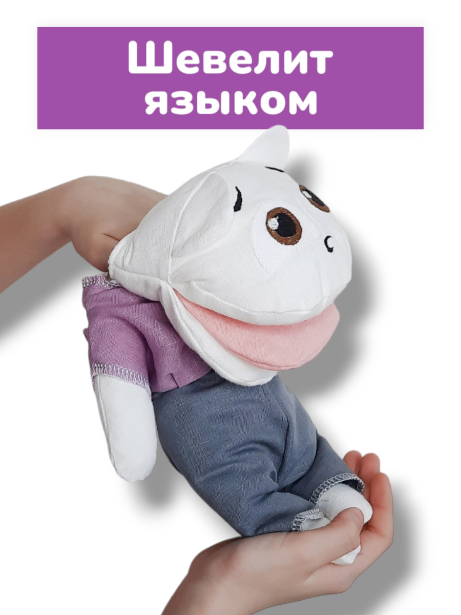 Игрушка на руку. Подвижный язык для занятий и игры. Логопедическая игрушка на руку позволяет в интересной для малыша форме провести артикуляционную гимнастику, уточнить положение языка, губ при произнесение звуков. Фусель напоминает куклу ребенка. Пропорции тела соблюдены, что формирует правильное представление о своём теле у ребёнка. Внутренний кармашек в теле мягкой игрушки позволит взять с собой на прогулку полезные мелочи. Можно положить в кармашек логопедические карточки для занятий. Лямки пригодятся для того, чтобы одеть ребенку куклу в качестве рюкзака. Логопедическое пособие всегда будет рядом с малышом. Одежда легко снимается и одевается. Их можно легко постирать и даже взять с собой купаться. Все декоративные элементы сделаны на машинной вышивке, они не выцветут, не полиняют и будут долго радовать Вашего ребёнка. Есть сертификаты качества. Сделано в России. Автор и разработчик игрушки Фусель — логопед-дефектолог Наталья Лопаткина.
